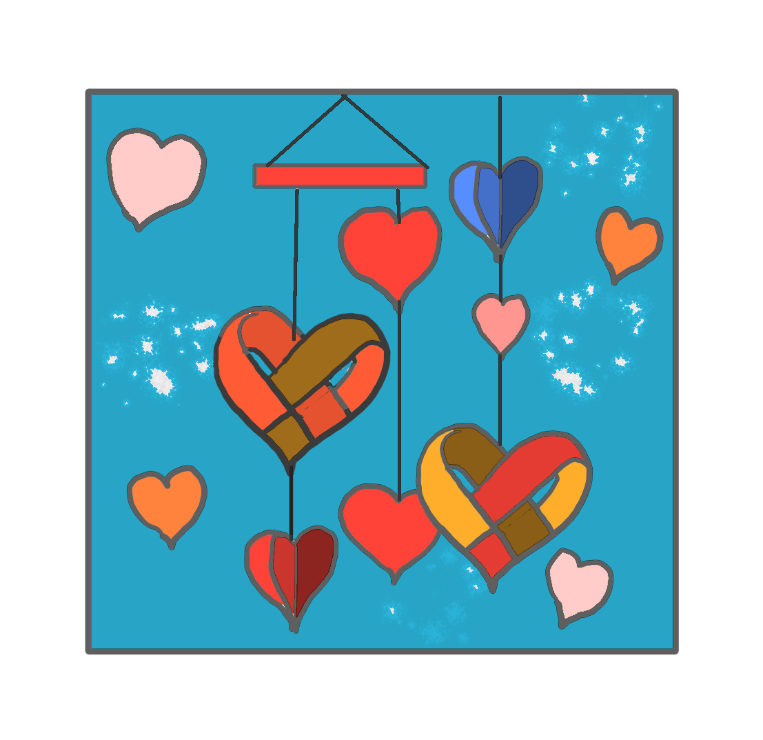 英語のえほんや紙しばいを聞いたり、ハートのモビールを作ったりしながら、あたたかく、やさしい時間を過ごすミニイベントです。
